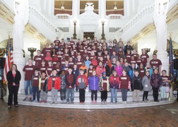 • Second-grade students from Elmwood Elementary visited the Capitol in late March. They learned about state government and construction of the Capitol building. The students are pictured in the Rotunda with me.