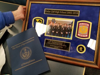 • Col. Frank Hancock recently retired after 16 years of service as leader of the U.S. Army Junior Reserve Officers’ Training Corps (JROTC) at Cedar Cliff High School. He helped create the program and has influenced the lives of countless students. I helped recognize him for his service at a surprise party held in his honor.